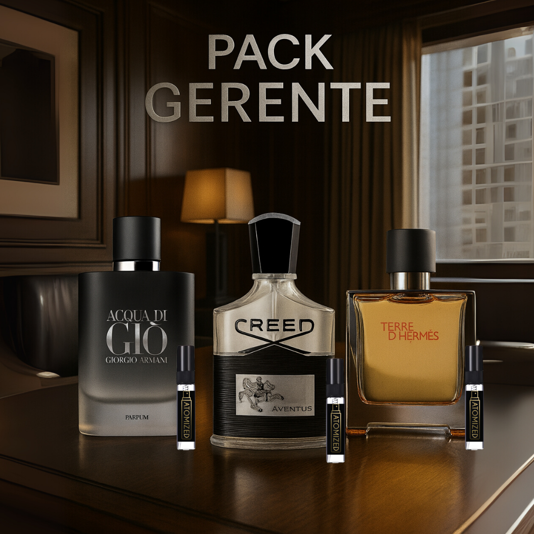 Liderazgo que se percibe antes de entrar en la sala. Tres fragancias que transmiten seguridad, visión y carisma, pensadas para el hombre que inspira y dirige. El pack “Gerente” está diseñado para proyectar autoridad sin perder cercanía, ideal para quien sabe que su presencia es parte de su marca personal.